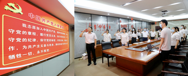 “我志愿加入中國共產黨,擁護黨的綱領,遵守黨的章程……”隨后,黨員們心懷赤誠,舉起右拳,重溫入黨誓詞,追憶入黨初心,鏗鏘有力的聲音響徹會場,表達了對黨的無限忠誠與熱愛。