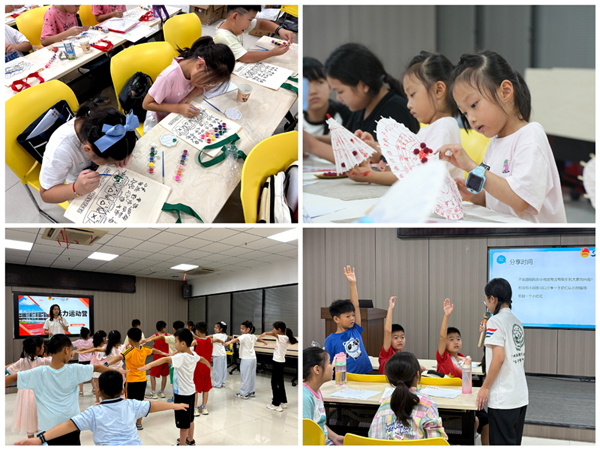 與往年相比,今年的托管班在課程與活動組織上不斷創(chuàng)新,設計更加多元,不僅保留了手工、繪畫、心理健康等傳統(tǒng)課程,還特別引入了非遺體驗環(huán)節(jié),“小候鳥”們在剪紙、皮影戲和艾草錘制作中感受傳統(tǒng)文化的魅力。安全教育也更具實效,來自消防與應急部門的沉浸式演練,讓大家在模擬場景中提升了防災避險的能力。外出活動同樣別具特色,孩子們走進大朗鎮(zhèn)禁毒教育基地,借助VR體驗和互動問答深刻認識到“珍愛生命,遠離毒品”的重要意義。在寓教于樂的過程中,通過主題參觀、團隊活動和互動教學,小朋友們不僅增長了知識,開闊了眼界,更在心中播下了責任與擔當?shù)姆N子。